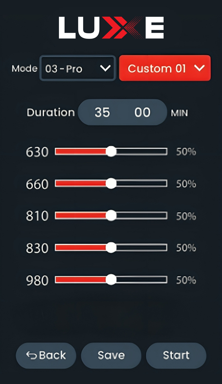 For advanced users, Pro Mode unlocks manual wavelength control and Live irradiance feedback, enabling precise replication of clinical protocols or custom fine-tuning.